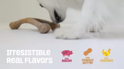 - Dog toys with 100% real food ingredients for irresistible flavor and scent, including 100% USA-sourced real bacon, all the way through the chew