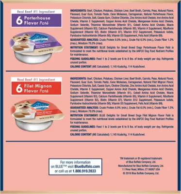 Blue Buffalo Life Protection Delights Small Breed Adult Filet Mignon/Porterhouse Pate Wet Dog Food Cups, 3.5 Oz.