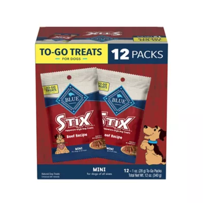 - Blue Stix TO-GO dog treats are made with delicious real beef as the first ingredient for a flavor no canine can resist