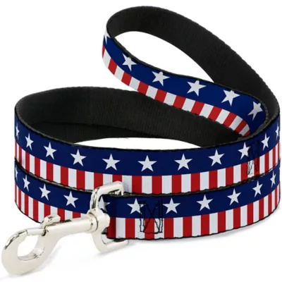 Buckle-Down Americana Stars And Stripes Dog Leash, Blue/White/Red/White