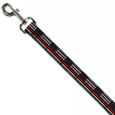Buckle-Down Thin Red Line Flag Weathered Dog Leash, 1 In. X 6 Ft., Black/Gray/Red