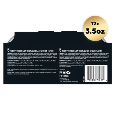 Cesar Wet Dog Food Classic Loaf In Sauce Top Sirloin & Grilled Chicken Flavors Variety Pk., (12) 3.5 Oz.