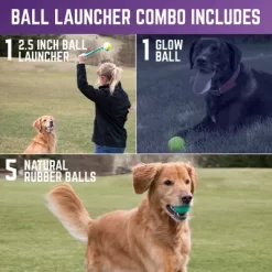 - Set includes 5 durable 2.5 in. rubber balls, 1 glow in the dark 2.5 in. fetch ball, and 1 ball launcher