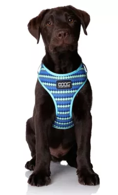 DOOG Pluto Blue With Blue And Green Chevron Neoflex Neoprene Dog Harness
