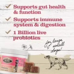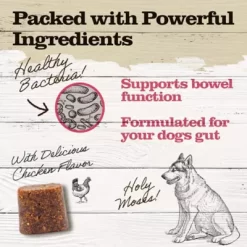 - Live and bioavailable probiotics help your dog’s digestive system find balance, aiding in anti diarrhea, gut health, and constipation relief