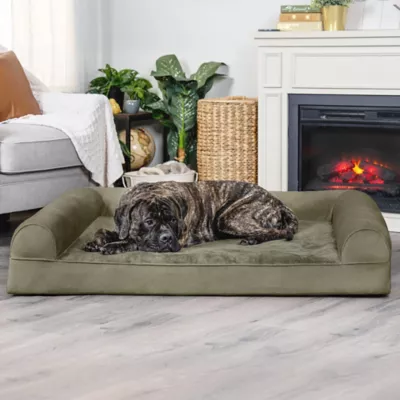 - Classic bolstered sofa design promotes ultimate comfort and security, providing high-loft orthopedic cushion support as well as a super cozy nestling and burrowing space for dogs and cats