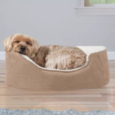 FurHaven Faux Sherpa And Suede Orthopedic Oval Dog Bed