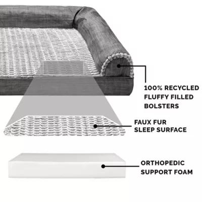FurHaven Luxe Fur And Performance Linen Orthopedic Sofa Dog Bed