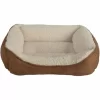 - SLEEP SURFACE: The main sleep surface is lined with soft plush, while the supportive bolsters are wrapped in soft fabric with stylish almond print; both materials are gentle on noses on paws for enhanced snuggling comfort