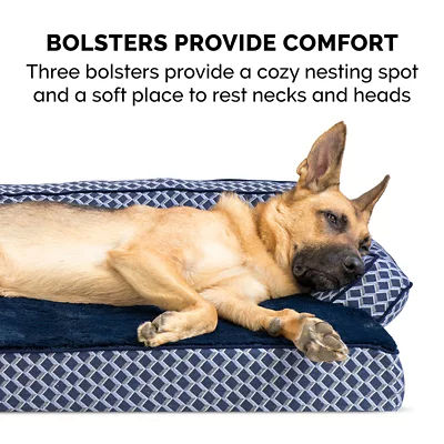 - Classic bolstered sofa design promotes ultimate comfort and security, providing high-loft orthopedic cushion support as well as a super cozy nestling and burrowing space for dogs and cats
