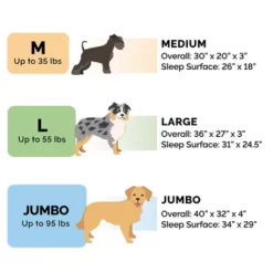Large – 36″ x 27″ x 7.25″ (foam: 3″ – sleep surface: approx. 31″ x 24.5″ – bolster length: 18″)