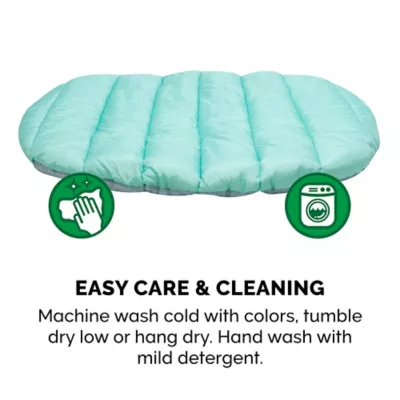 - Lightweight polyester material in the reversible travel dog bed is easily washable and dries quickly