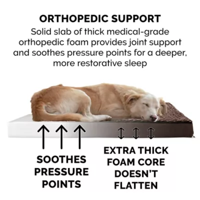 - Solid slab orthopedic foam core in the full support dog bed to soothe pressure points and joints