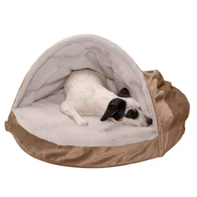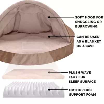FurHaven Wave Fur And Velvet Orthopedic Hooded Snuggery Dog Bed