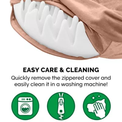 - Cover of the hooded snuggery dog bed is zippered and removable for easy care washing