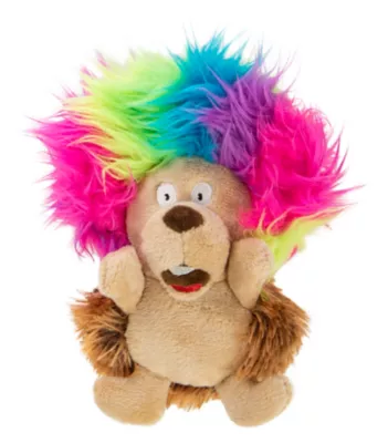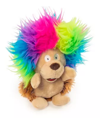 GoDog Silent Squeak Crazy Hairs Chew-Resistant Soft Hedgehog Dog Toy, Small