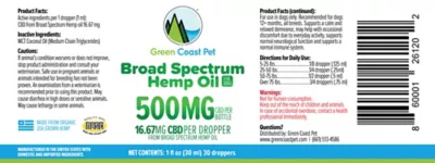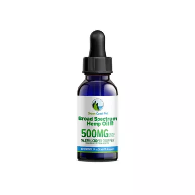 - 500 mg CBD per bottle/8.33 mg CBD per 1 mL dropper from broad spectrum hemp oil