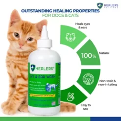 Healers Eye & Ear Wash is a gentle healing solution to wash away eye and ear pollutants. The two-in-one chemical-free, non-irritating, non-stinging solution cleans away dirt, soothes inflammation, and promotes the healing of tissues for both the eyes and ears, Aides in getting rid of tear-stain some pets experience. Made with Hypochlorous Acid, a natural compound produced in the body, the non-stinging solution is perfect and safe for use around the eyes, nose, mouth & ears. For the first time ever, a 2 in 1 pet pet product that offers incredible protection & healing for your pet from various harmful factors. Clinically tested & formulated by top researchers. This ear & eye wash has rejuvenating benefits which promote healing of tissues for both eyes & ears. A solution created for your pet that uses the power of hypochlorous acid to protect & cure your pet from viruses, bacteria, or even fungus! Did you know hypochlorous acid is an all-natural component that already exists in your pet? We use this in our pet wash to rapidly heal wounds, cuts, burns & scrapes without having any side effects! You can rapidly get rid of tear stains from your pet without causing any irritation or harm. In-fact, this gentle & anti-inflammatory wash helps soothe the membranes of eyes & ears. It also helps to reduce redness ,easily. You can use to clean their ears after activities like swimming, or running to prevent moisture from settling down. Healer’s Ear & Eye wash is completely natural, non-toxic, non-irritating & free from harmful chemicals. There is no ingredient that is harmful & toxic for your pet during any part of the process. This Ear & Eye wash is a result of a high-tech system that includes electrolyzed water as one of its components. This makes it suitable for every pet whether it’s a dog or cat. It is non-species specific ,so you can use it on any pet of any age .