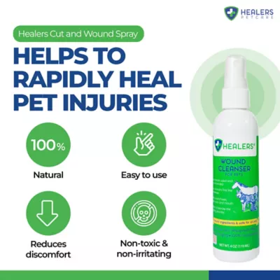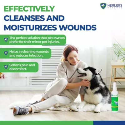 Healers Wound Cleanser is an All Animal Wound and Skin Care Spray that aids to clean, flush and moisturize. It is natural & non-toxic to heal and relieve pain. This pet wound cleanser is the perfect solution that pet owners prefer for their pet injuries. It’s a potent formula which helps in cleaning any wound & reduces infection. It also leaves no room for injuries to spread. Use this to soothe any injury throughout the body, even around eyes, ears & mouth! Most pet care products do more harm than good because of the use of their toxic chemicals. Here at Pet healers we’re committed to using scientifically proven organic compounds, just like we would use for our own pets. Injuries are painful. We get it. The pain your pet goes through & we go through is tough. That’s why we’ve created this wound cleanser & irritation reliever to take care of those wounds, burns and cuts at home without causing more pain to your pet. Nightmare for germs, bacteria and infection & best friend for protecting pets. Let the Hypochlorous acid work to help your pet take care of any injuries. HOCL is present in this wound care spray and works to break down the cells that create infection and halts the infection process for getting worse. If you’re looking for an easy, fast & natural way that helps to rapidly cure pet injuries without having to rinse after applying, then this all-animal wound care spray is perfect for you. We’ve made this pet wound spray to suit every pet who is suffering from pain & injuries. Choose the size that best fits your needs. We offer it in a 2oz, 4oz and 8oz bottle. Are you looking for the perfect solution to keep your pet’s wounds clean, soothed, and healed? Wound Cleanser is the one-stop solution you need! Our natural and non-stinging formula has been carefully crafted to provide effective relief from itching, swelling, and pain associated with wounds. Plus, it’s safe for use on all animal species, so you can be assured that your beloved pet is getting the best care possible. We understand the worry and stress that comes with caring for a pet with a wound. That’s why we created it to make it easier for pet parents like you to keep your furry friend healthy and happy. Our caring formula will clean, flush, and moisturize wounds, giving you peace of mind that your pet loved one is getting the best care. With this Wound Cleanser, your pet can heal in comfort and safety. Using Wound Cleanser you will increase the healing process and reduce inflammation. Get your Wound Cleanser today, and let us take care of the rest!