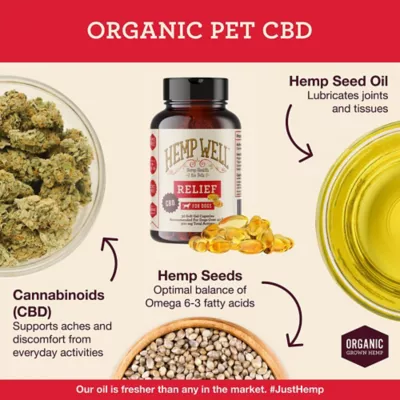 - Pet hemp capsules may ease aches and discomforts from daily activities