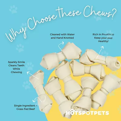 Hotspot Pets 4-5 In. All Natural White Knotted Rawhide Bone Dog Chew Treats, 12 Ct.