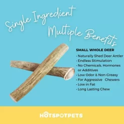 - SINGLE INGREDIENT Antler DOG CHEW These premium healthy dog chews made from free-range, hormone-free grass-fed cattle. They are all-natural and contain NO chemicals or artificial ingredients. Each Antler comes trimmed and cleaned, ready for Fido to chow down on.