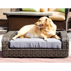 - This elevated dog bed is made from woven, pliable palm stems of Rattan with a metal frame
