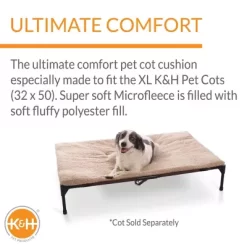 - X-Large size elevated dog cot pad measures 32 x 50 inches and fits any K&H X-Large Pet Cot