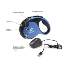 KennelMaster Retractable Leash With USB Rechargeable Night Light, 16 Ft.