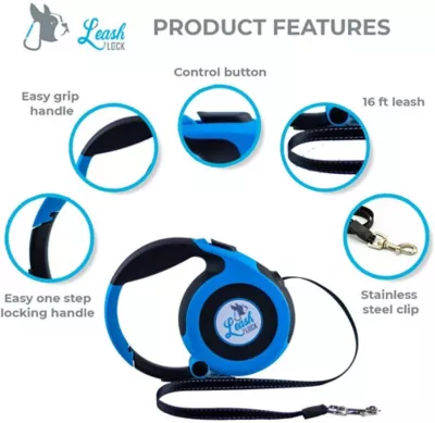 Leash Lock Keyless Retractable Dog Leash, 16 Ft.