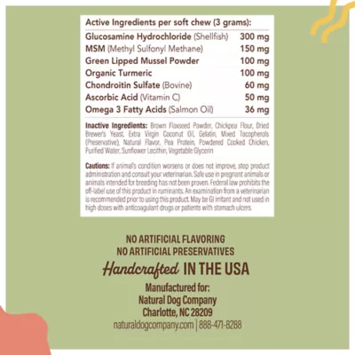 Natural Dog Company HIp & Joint Supplement, Chicken Flavor, 90 Chews
