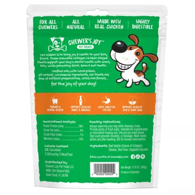 High protein long lasting chewable treats, help to support joints, bones, and muscles, boost digestive system, promotes skin well-being and a beautiful shiny coat. Dental hygiene support through long lasting chewing action.