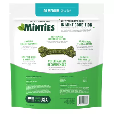 - One vet-recommended MINTIES Dog Dental Treat is all it takes to start dog teeth cleaning and freshening, and to help remove plaque and tartar.