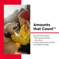 - More Glucosamine per hip and joint biscuit than other leading brands. Helps ease discomfort of sore, stiff muscles and joints due to daily exercise while soothing aches and pains associated with strenuous activity