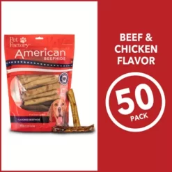 Pet Factory American Beefhide Chip Rolls Assorted Flavors (Beef & Chicken) – 5″, 50 Count