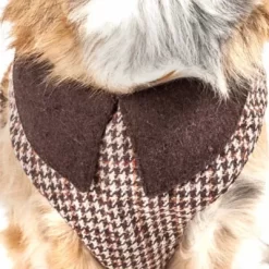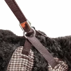 - Features a Sprawling Designer Dark Cocoa split collar that sits above a coordinated and accented Brown Plaided body