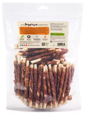 - Mouth-watering dog treats made from natural duck breast wrapped around a rawhide chew.