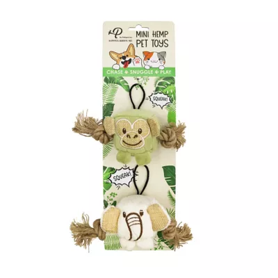 - FUN: Squeaker inside and hemp rope for chewing Mentally and Physically stimulates your dogs when they play Cute block head filled with stuffing and a squeaker
