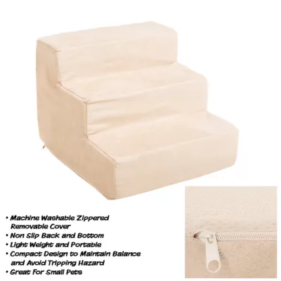 - REMOVABLE COVER – Featuring a 2-tone tan color, the handy cat stairs have a zippered microfiber cover that is easy to remove for machine washing when they become soiled. Plus, a nonslip bottom and backside ensure your pet is kept safe from falling.
