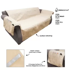 - 3-CUSHION COUCH SLIPCOVER – This tan couch protector for dogs has an attractive quilted finish that is easy to care for and is designed to fit most upholstered sofas with 3-cushions up to 65.5 in. in seat width.