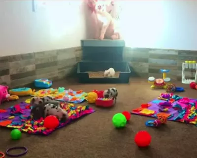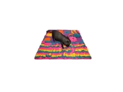 This is a fun activity mat to keep your pet busy. Pets require physical and mental stimulation to meet their needs. Rooting/nudging is a natural behavior and shouldn’t be discouraged. Just throw some dry pellets or treats on this mat or tuck them under the flaps. Your pig or other pet will be occupied searching until every last tasty treat has been found. Dimensions: 35 in. x 35 in. Also included is a musical piano. Your pet will quickly learn to play for a treat reward. Ideal musical toy for your pet – Five easy-to-press keys – Colorful keys and chimes. Dimensions: 7.1 in. x 6.3 in.