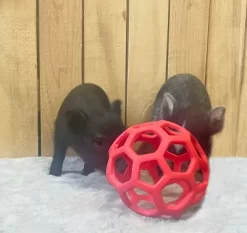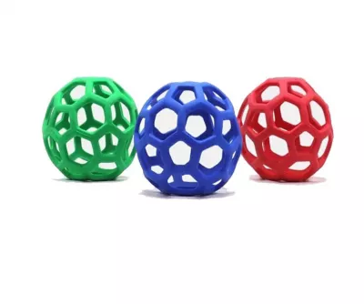 Unique design features openings that allow the balls to be used as a treat ball. Fun, light weight, but durable. Works well for dogs, pigs, rabbits, as well as other pets. You can stuff the balls if you choose too with veggies, fruits, dog bones, or hay. Made from non-toxic durable rubber.