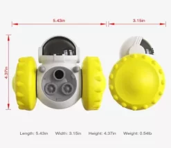 Unique robot shaped push treat dispenser. Flip open the helmet and load it up with food or treats. Pets have a blast pushing this toy around as it leaks food. Requires no batteries Anti-overturn