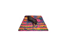 This is a fun activity mat to keep your pet busy. Pets require physical and mental stimulation to meet their needs. Rooting/nudging is a natural behavior and shouldn’t be discouraged. Just throw some dry pellets or treats on this mat or tuck them under the flaps. Your pig or other pet will be occupied searching until every last tasty treat has been found.