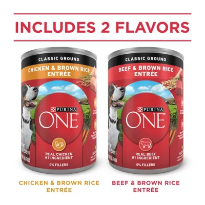 Purina ONE Natural Pate Wet Dog Food Variety Pk., SmartBlend Chicken Entree & Beef Entree – (6) 13 Oz. Cans