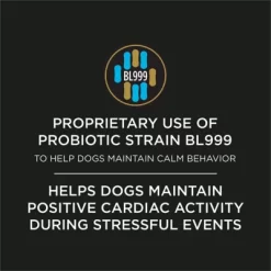 - Dog food supplement powder containing a probiotic with 1×109 CFU of Bifidobacterium longum BL999 per packet to support calm behavior