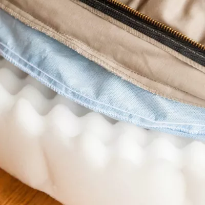 - 3 in. orthopedic foam is topped with 2 layers of additional batting for added cushion and support