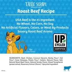 - Table scraps dog treats have a savory roast beef aroma that your dog will come running for every time