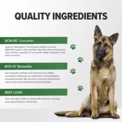- Hip and joint dog supplement is recommended for joint flexibility and comfort