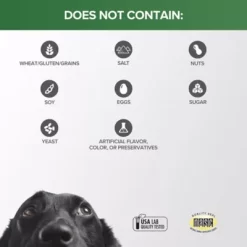 - No nuts, eggs, sugar, salt, yeast, wheat, gluten, soy, artificial coloring, artificial flavoring, or artificial preservatives.